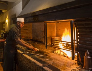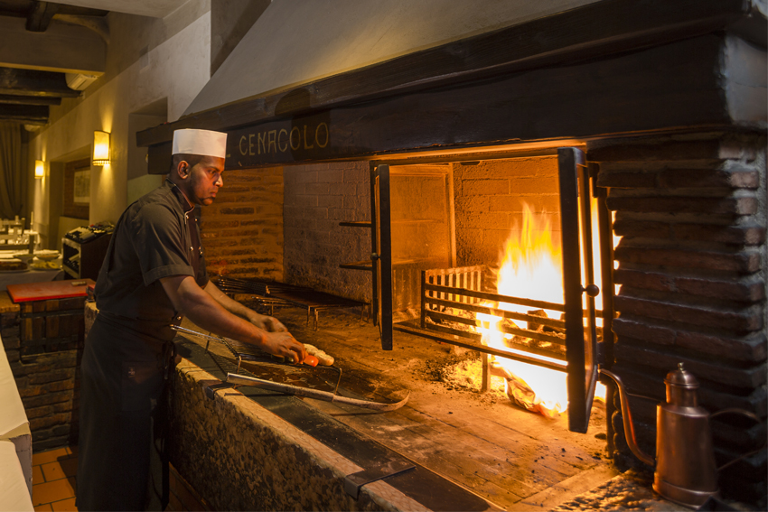 Il menù offre inoltre un’ampia selezione di carni che vengono cucinate «a vista» sul grande e suggestivo camino sempre acceso.